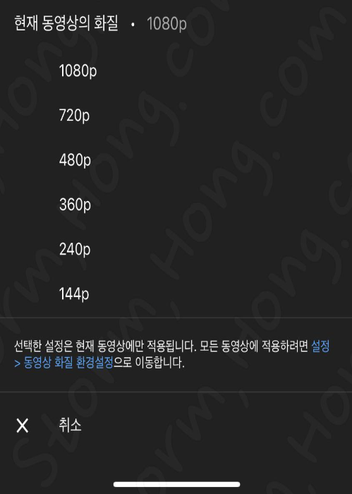 ↑ 동영상에서 3개의 점을 누른 다음 화질을 누른 부분입니다.