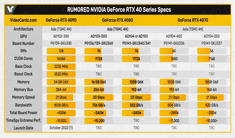 * NVIDIA GeForce RTX 4080 예상, 예측, 루머, 소문의 사양