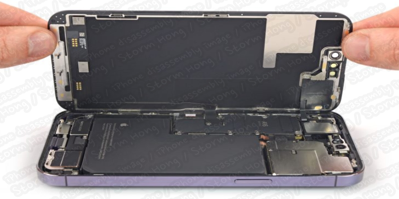 ↑ iPhone 14 Pro Max를 보여주는 iFixit 해체 작업