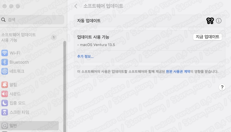 ↑ 기존 macOS Ventura 13.5 에서 설치 시작 시 실제로 위 사진처럼 2.71 GB 로 설치 용량이 늘어납니다. 따라서 설치가 덜되어 있는 분들은 더 클 수 있습니다. 따라서 macOS Ventura 13.5 업데이트 시에도 설치 공간은 예상치 보다 더 많이 필요할 수 있습니다.